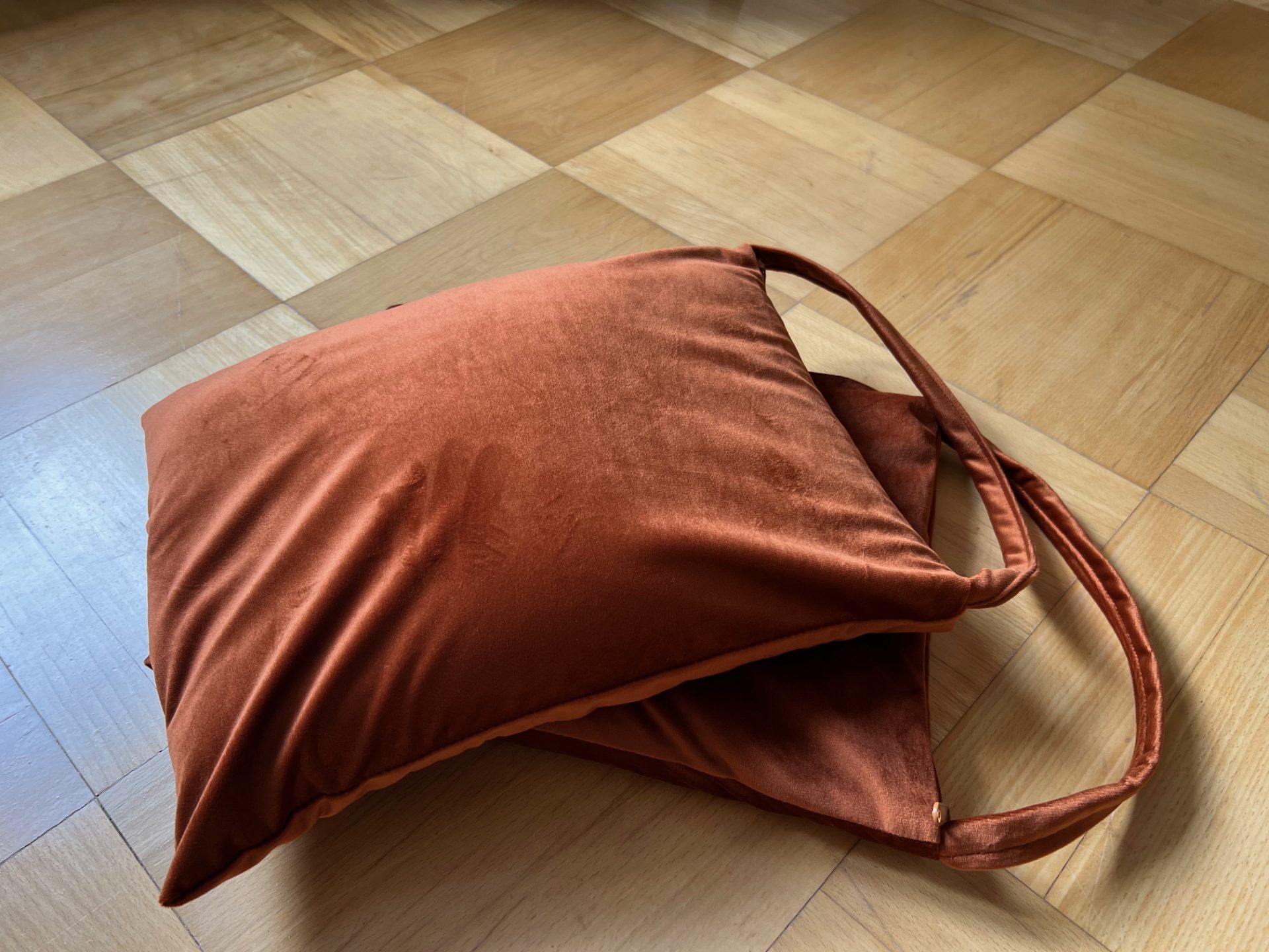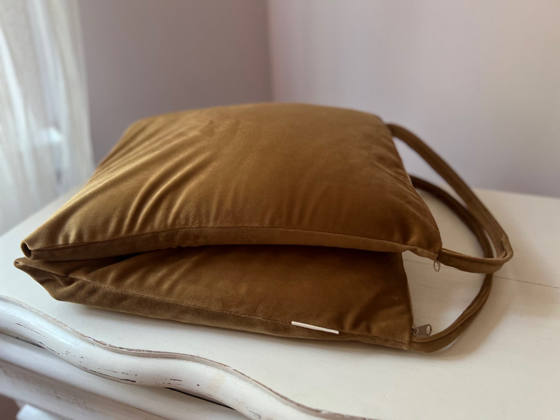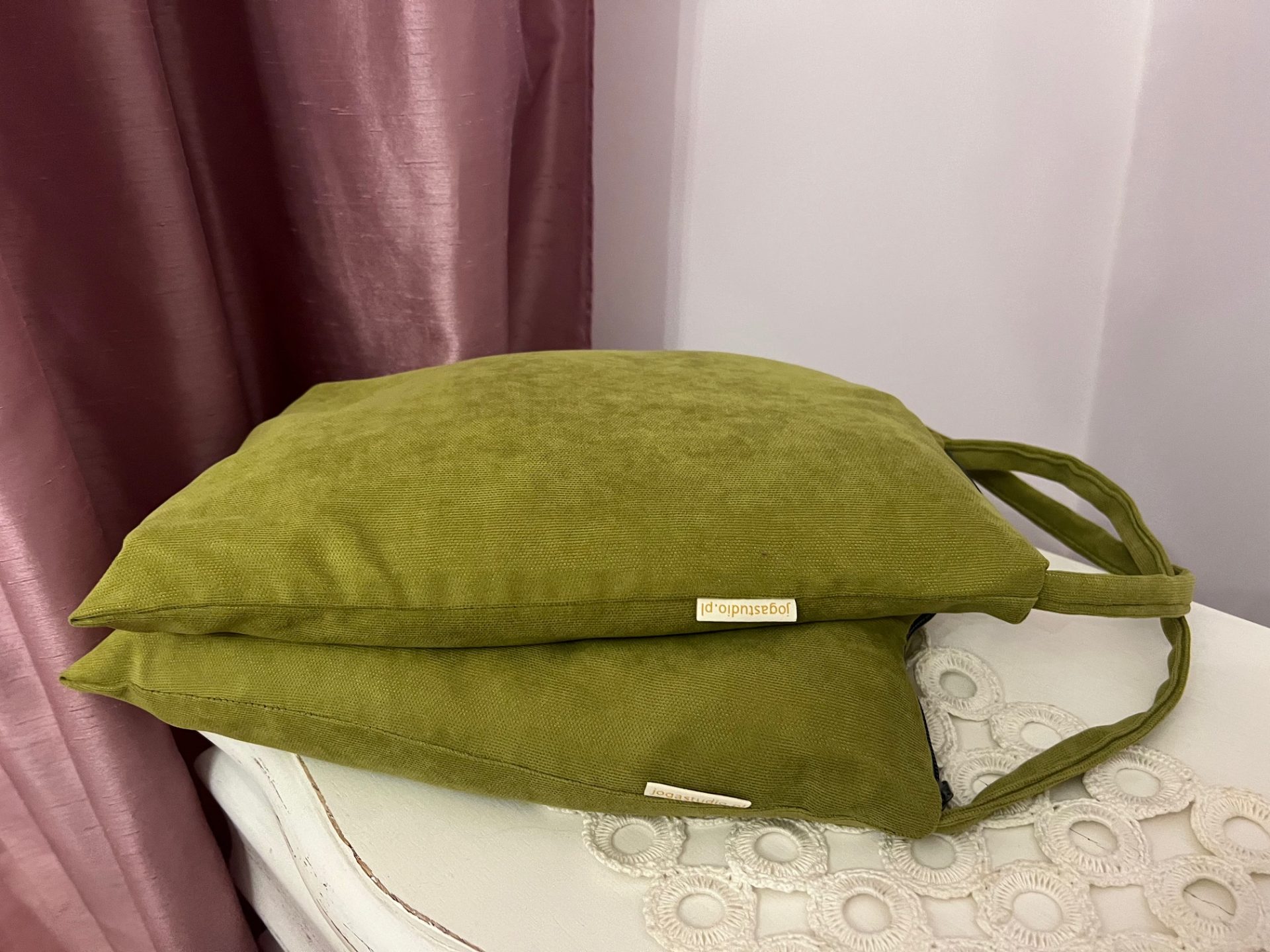 Worek wypełniony sypkim i suchym piaskiem o wadze około 6,5- 7 kg z pokrowcem z rączką i zamkiem.