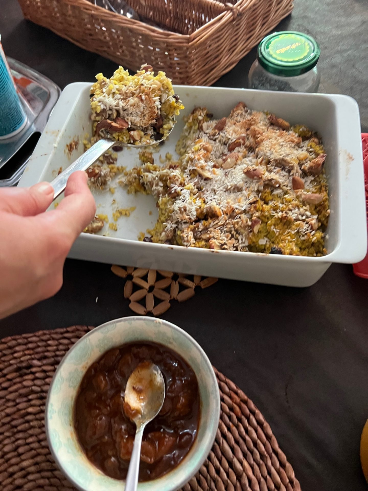 9:00 poranna jaglanka to nasza specjalność a’la ciasto pieczona z bakaliami i owocami , do tego domowe przetwory jabłka, wiśnie mirabelki z własnego ogrodu, herbata, imbir, kawa